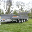 Aufgrund der Anordnung der Räder nimmt er im Vergleich zu einem Maschinenanhänger gleicher Größe weniger Platz auf der Straße ein. Darüber hinaus ist das Be- und Entladen von Maschinen unterschiedlicher Größe dank der starken Rampe noch einfacher. Die abnehmbaren Luken und die aufklappbare Schottluke sorgen für eine große Ladefläche! Und schließlich ist das Einzigartigste an diesen Anhängern, dass die Klappenverriegelung und die Rungenverriegelung in einem sind.