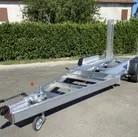 Deze aanhangwagen is volledig gemaakt van aluminium en is speciaal bedoeld voor het vervoer van bouwmaterieel, in het bijzonder voor hoogwerkers op rupsbanden en bouwmaterieel in het algemeen.